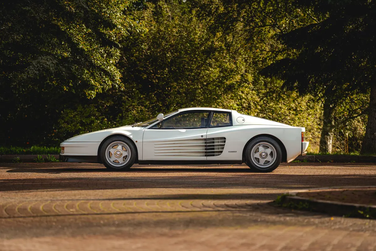 For me, the Monospecchio—or single mirror—is the purest expression of the Testarossa platform and an irresistible symbol of eighties excess. The colour of this particular car makes it even more special. While the hero car from Miami Vice left the factory in black before being painted white for better visibility during night scenes, this Monospecchio was born in Bianco—one of only 15 early single-mirror examples built in that shade.