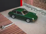 When Walker acquired the 911 in 2009 following a lightning trip to the Pacific Northwest, it remained much as it was when it was first delivered. It wears a repaint in its factory-correct Irish Green and retains its numbers-matching flat-six (it is currently fitted with an earlier type 901/0 gearbox numbered 100717). The original Black leatherette interior, original carpets, and wood-rimmed steering wheel boast the authentic patina that comes only from years of careful use. It still rides on the gray-coated steel wheels, sans hubcaps, installed by Walker after his purchase.